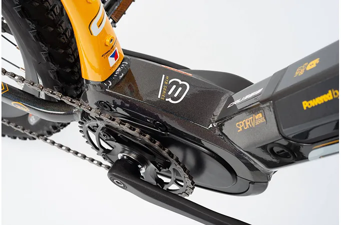 Motor je umístěn ve středové části rámu, díky tomu jsou zajištěny maximálně dobré manipulační schopnosti s kolem a komfortní jízda a sportovní vzhled.