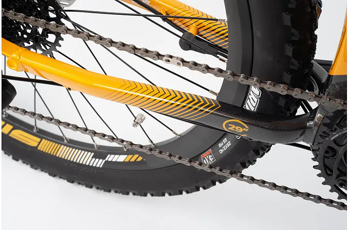 Komfort zajišťuje vyladěná geometrie a také bohatá základní výbava s odpruženou vidlicí s pružinovým tlumením, kotoučovými brzdami a stabilními 29“ zapletenými koly.