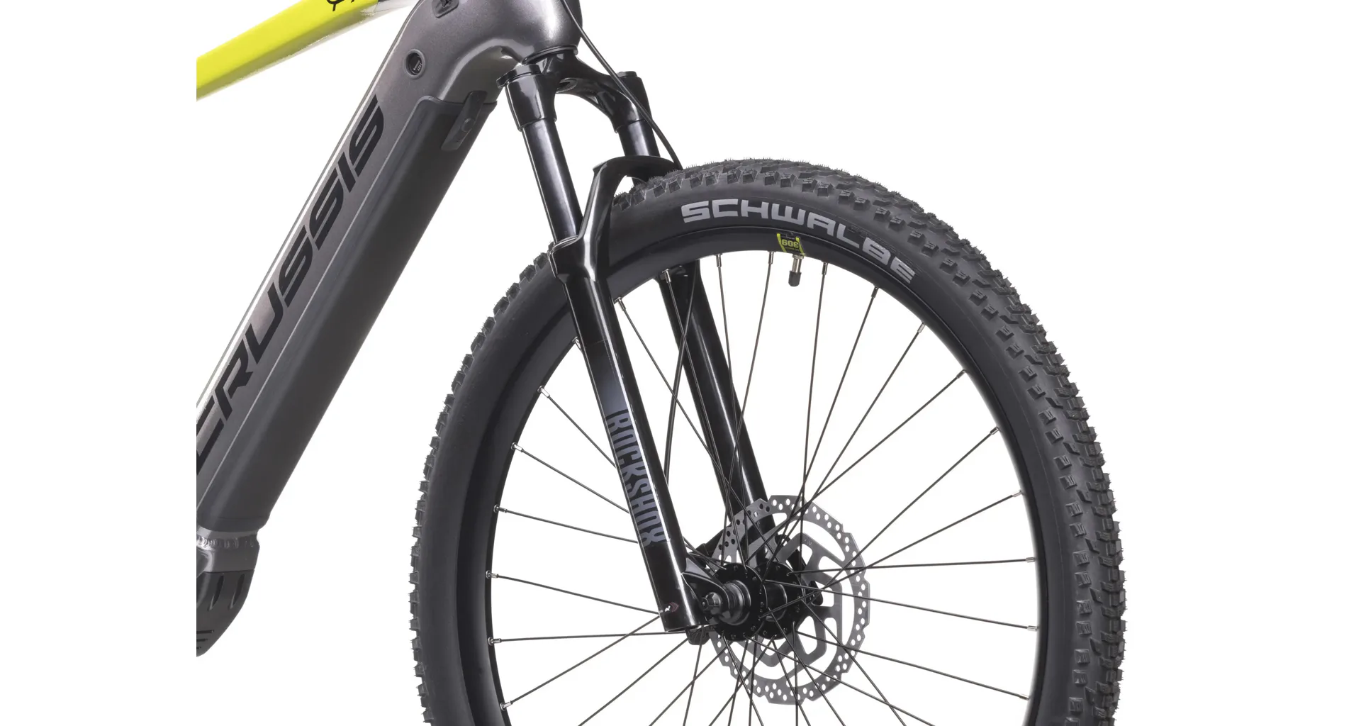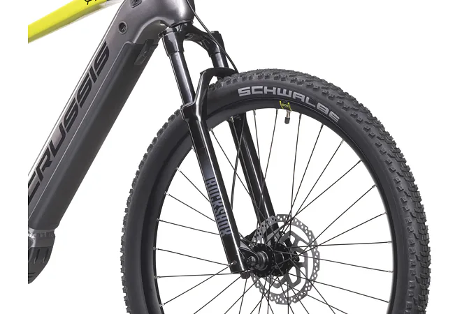 Crussis e-Largo 9.10 je vybaveno odpruženou vidlicí se vzduchovým tlumením ROCKSHOX FS Judy Silver TK Solo Air 29" se zdvihem 100 mm, která je skvěle přizpůsobivá váze cyklisty.