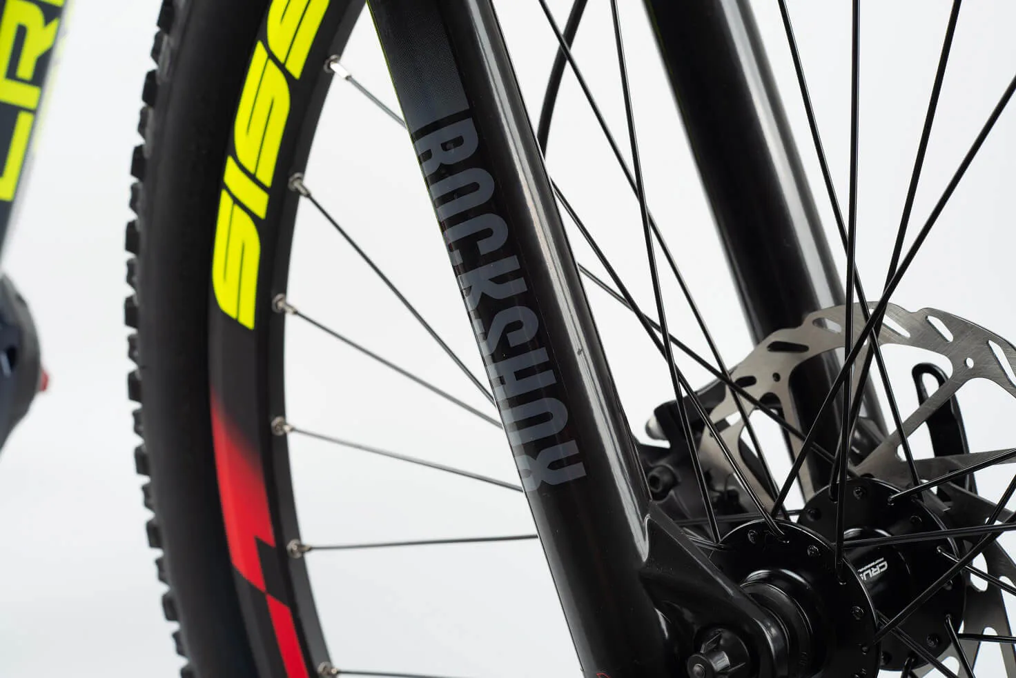 Crussis e-Largo 9.7 je vybaveno odpruženou vidlicí s pružinovým tlumením ROCKSHOX FS Judy Silver TK Solo Air 29" se zdvihem 100 mm, která je skvěle přizpůsobivá váze cyklisty.