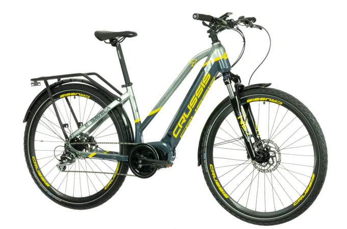 Model CRUSSIS e-Savela 7.7 patří mezi oblíbená treková elektrokola značky CRUSSIS určené především pro dámy! Vyniká především svoji integrovanou baterii přímo v rámu, takže není nijak narušený design kola a zajišťuje maximální komfort a ovladatelnost při jízdě jak v nízké, tak i vysoké rychlosti. Kapacita baterie se liší dle zvolené varianty – základní (14,5 Ah) nebo S (17,5 Ah), M (20 Ah).