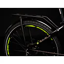 Komfort zajišťuje vyladěná geometrie a také bohatá základní výbava s odpruženou vidlicí s pružinovým tlumením, kotoučovými brzdami a stabilními 28“ zapletenými koly.