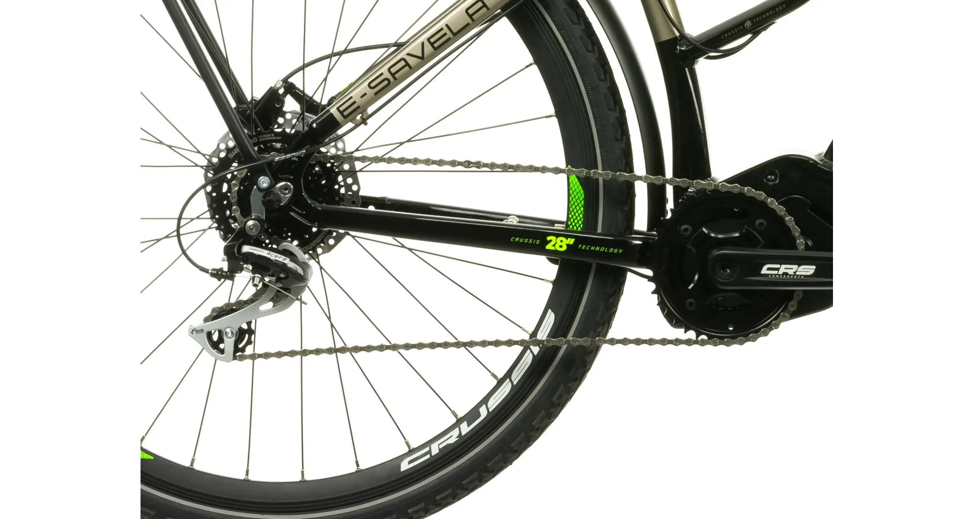 Model Crussis e-Savela 7.9 patří mezi oblíbená treková elektrokola. Vyniká integrovanou baterií přímo v rámu, takže není nijak narušený design kola a zajišťuje maximální komfort a ovladatelnost při jízdě jak v nízké, tak i vysoké rychlosti. Kapacita baterie se liší dle zvolené varianty – XS (14,5 Ah) nebo M (20 Ah).
