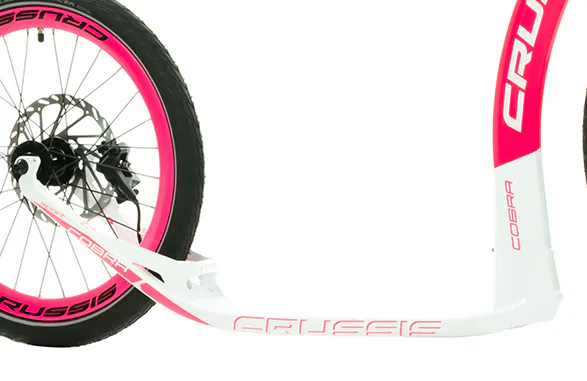 Unikátní hliníkový rám koloběžek Crussis Cobra Sport 4.2-5 byl vyvinut tak, aby se zadní vidlicí tvořil jeden celek. To eliminuje únavové lomy v místech, kde je vidlice ke stupátku obvykle přivařena. Kónický tvar hlavové trubky spolu s trojúhelníkovým profilem krku zvyšuje pevnost rámu.