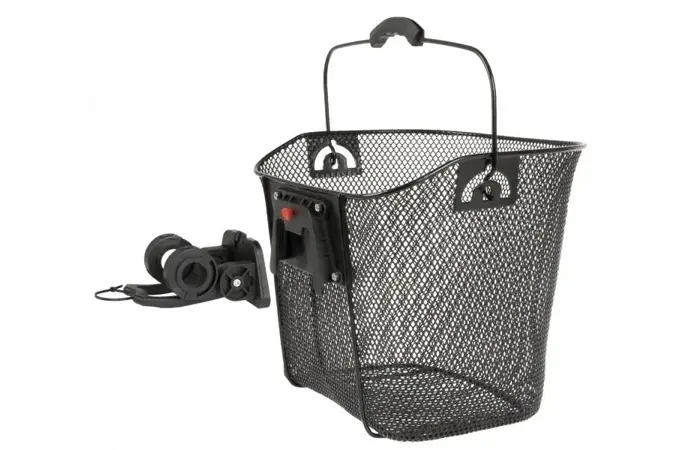 Praktický kovový koš na řídítka kola nebo koloběžky. Košík lze snadno připevnit a sejmout pomocí držáku klick fix. Košík drží velmi pevně, takže se nemusíte bát, že by vám během jízdy spadl. Nosnost košíku je 5 kg. Ideální na převoz nákupu nebo na lahev s vodou. Košík lze použít i samostatně díky vlastnímu uchu.