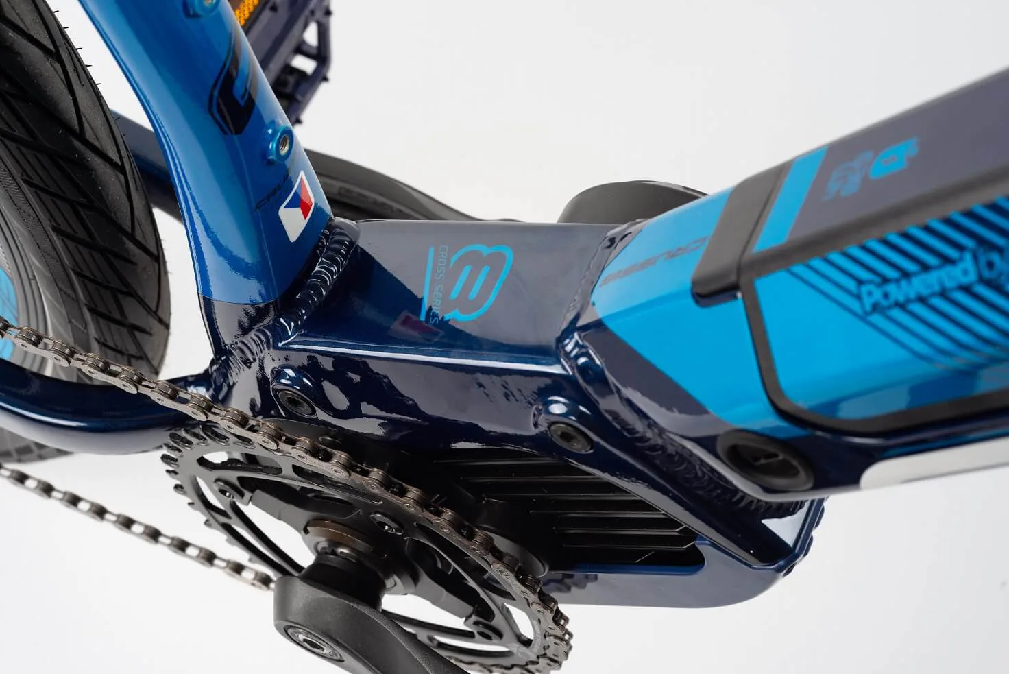 Motor je umístěn ve středové části rámu, díky tomu jsou zajištěny maximálně dobré manipulační schopnosti s kolem a komfortní jízda a sportovní vzhled.
