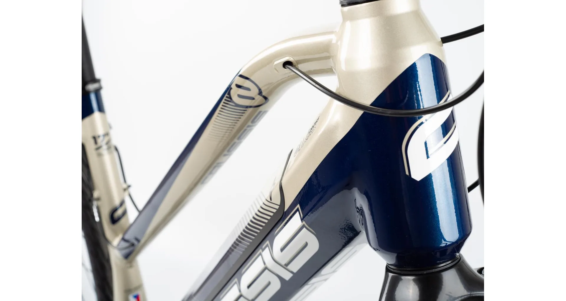 Komfort zajišťuje vyladěná geometrie a také bohatá základní výbava s odpruženou vidlicí s pružinovým tlumením, kotoučovými brzdami a stabilními 28“ zapletenými koly.