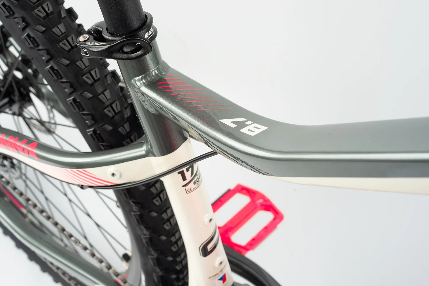Model disponuje 17" rámem s moderním designem z hliníku, baterií integrovanou v rámu a výkonným pohonem ve středu rámu.