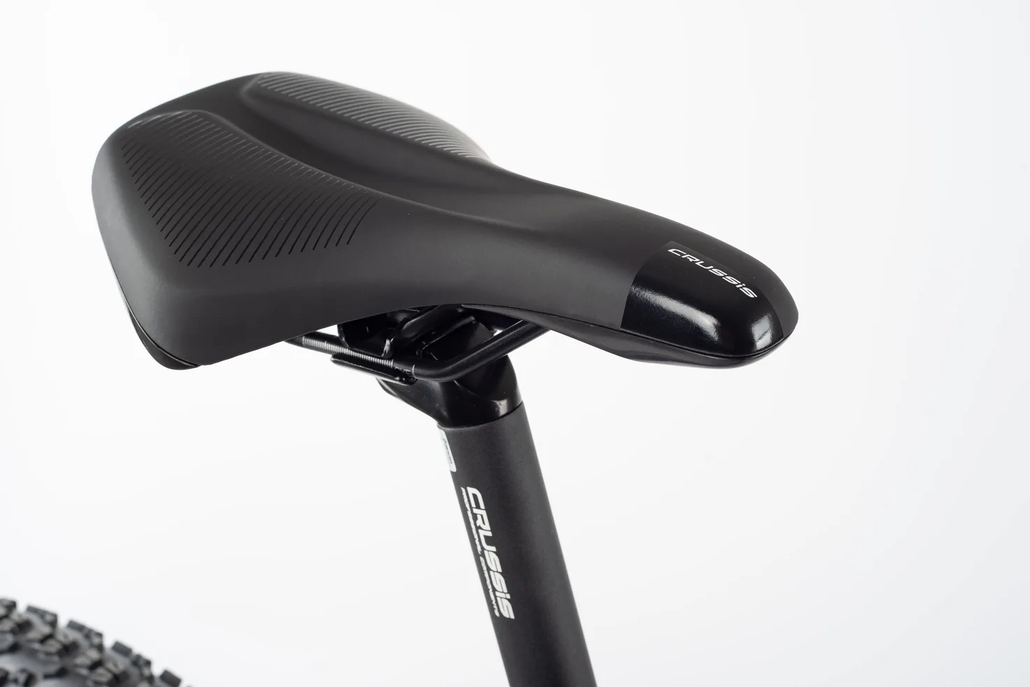 Komfort zajišťuje vyladěná geometrie a také bohatá základní výbava s odpruženou vidlicí s pružinovým tlumením, kotoučovými brzdami a stabilními 27,5“ zapletenými koly.