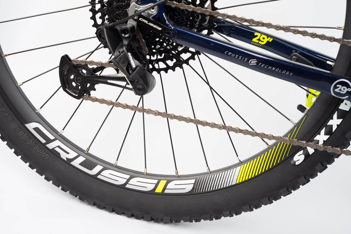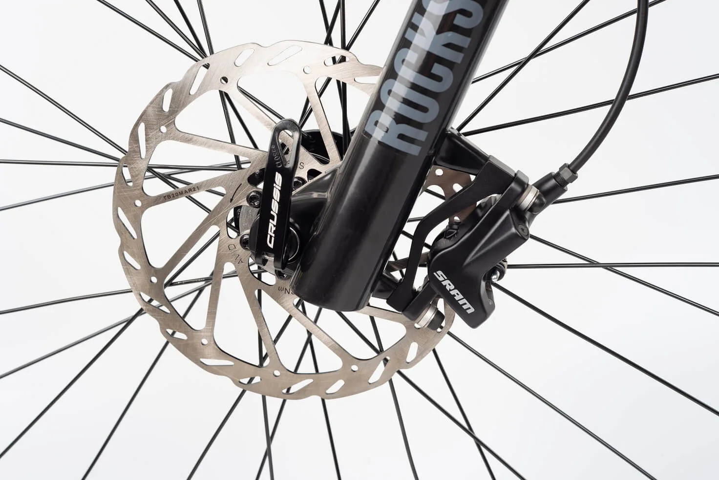CRUSSIS CRUSSIS OLI Largo 8.7 je vybaveno odpruženou vidlicí s pružinovým tlumením ROCKSHOX FS Judy Silver TK Solo Air 29" se zdvihem 100 mm, která je skvěle přizpůsobivá váze cyklisty.