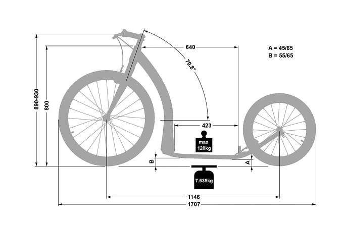 Koloběžka je vhodná pro jezdce od 140 - 190 cm vysoké.