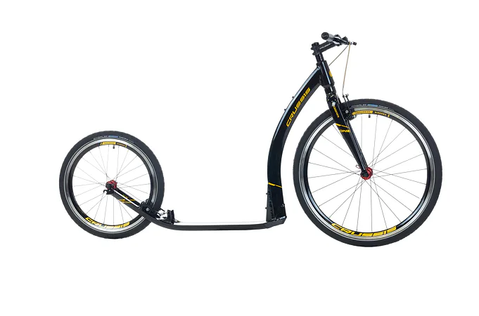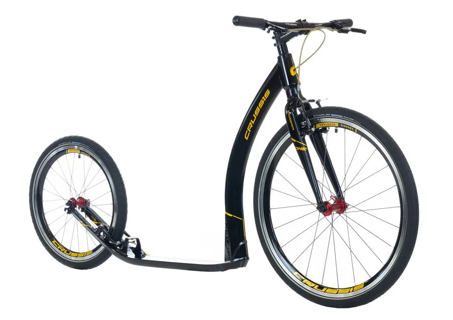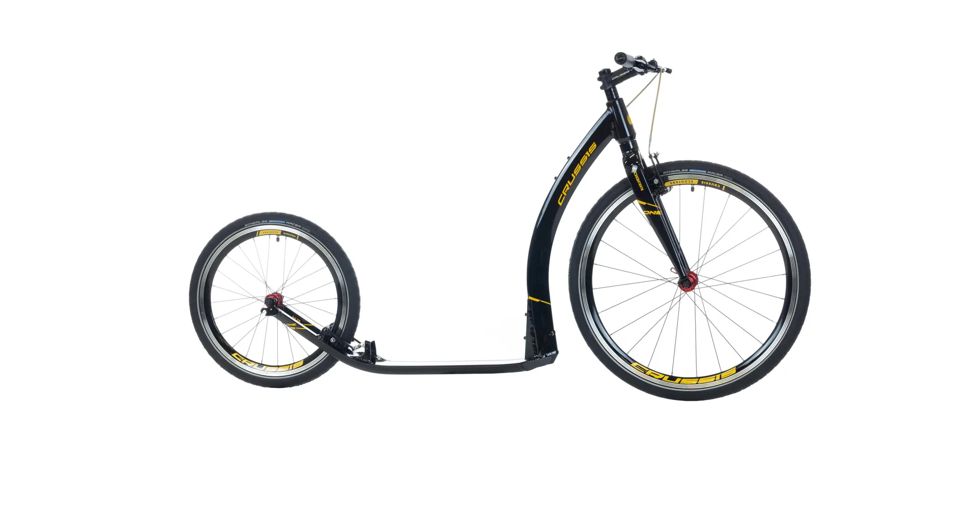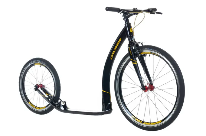 Unikátní hliníkový rám koloběžek Crussis Cobra byl vyvinut tak, aby se zadní vidlicí tvořil jeden celek. To eliminuje únavové lomy v místech, kde je vidlice ke stupátku obvykle přivařena. Kónický tvar hlavové trubky spolu s trojúhelníkovým profilem krku zvyšuje pevnost rámu.