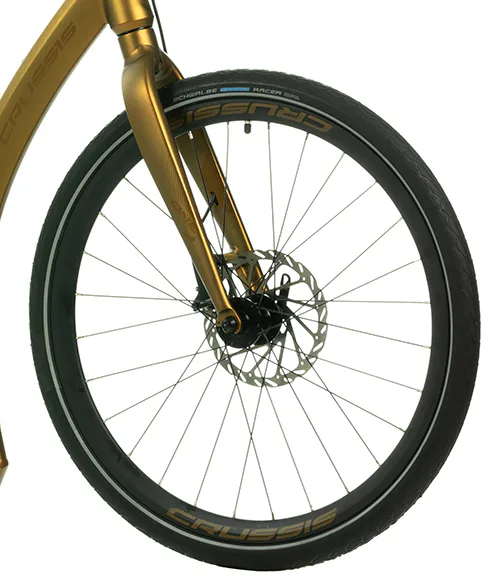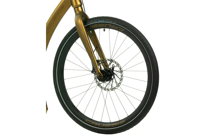 Komfort zajišťuje nejen vyladěná geometrie, ale také stabilní kola obuta do osvědčených plášťů Schwalbe Marathon Racer, které mají extrémně nízký valivý odpor a výborný záběr.