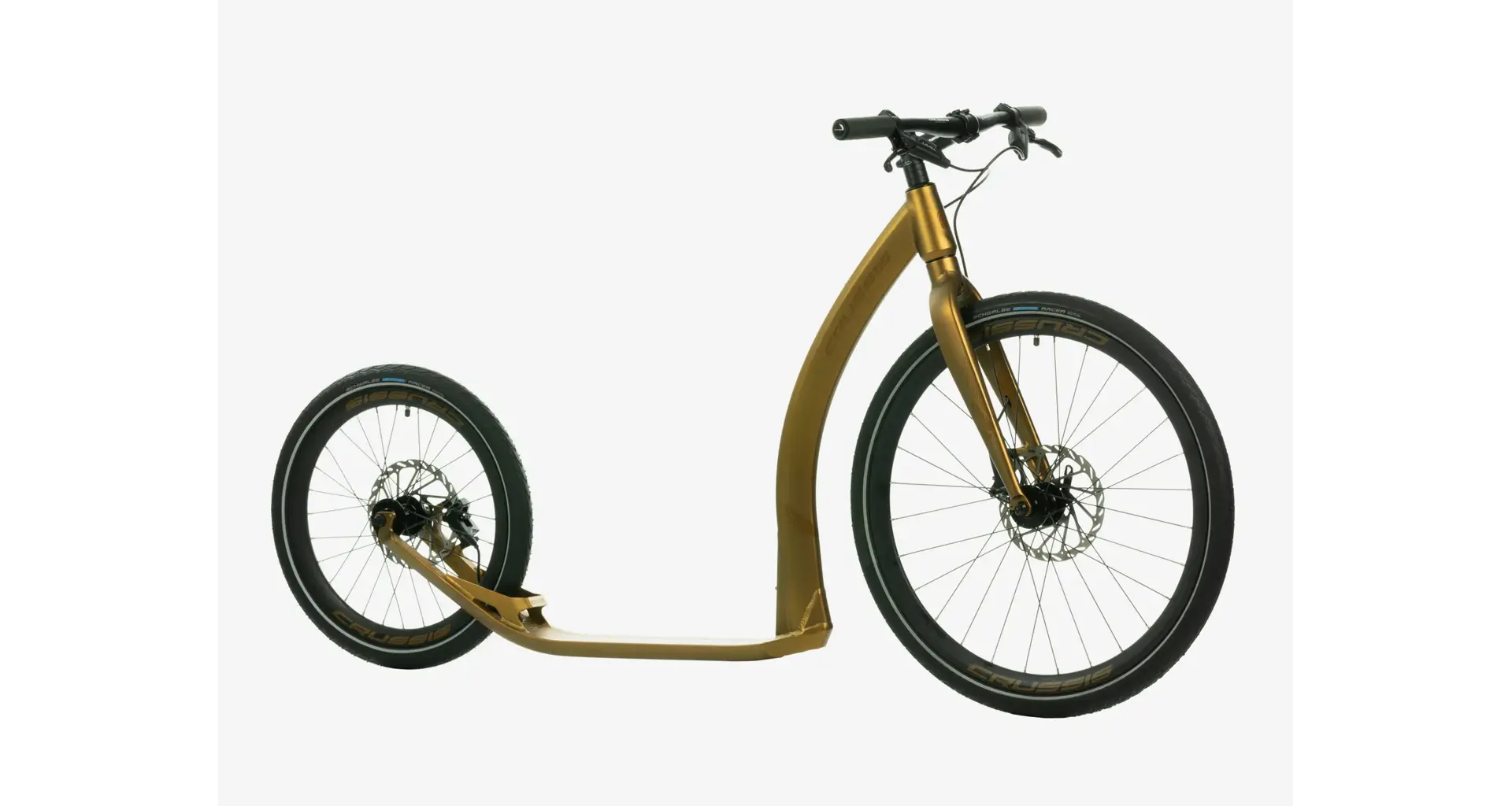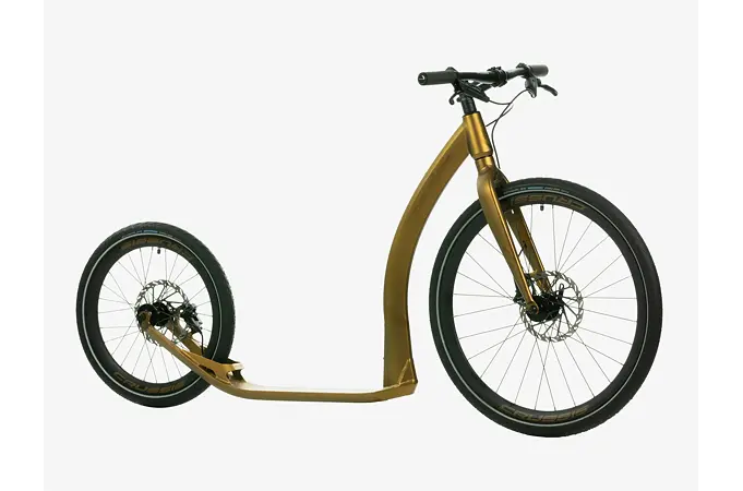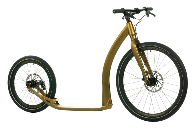 Pro co nejpohodlnější jízdu je pak koloběžka vybavena špičkovými kotoučovými brzdami od světoznámého výrobce SRAM, zvonkem na levé páce a pohodlnými silikonovými gripy.