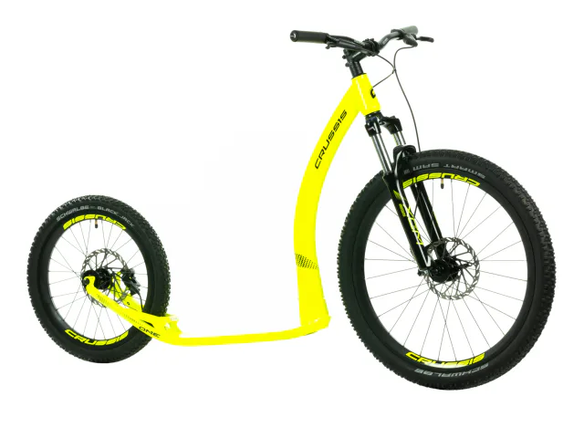 Koloběžka pro dospělé Crussis ONE CROSS 6.2-1 je lehká hliníková koloběžka s velkými nafukovacími koly a odpruženou vidlicí. Skvělá do do náročnějšího terénu na sjezdy či akční jízdu se psem.