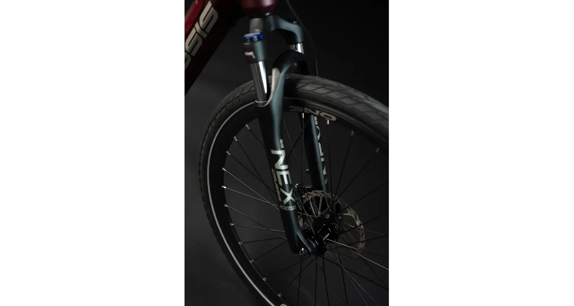 Crussis ONE-Cross 7.8 je vybaveno odpruženou vidlicí s pružinovým tlumením SUNTOUR NEX HLO DS 700c se zdvihem 63 mm, která je skvěle přizpůsobivá váze cyklisty.