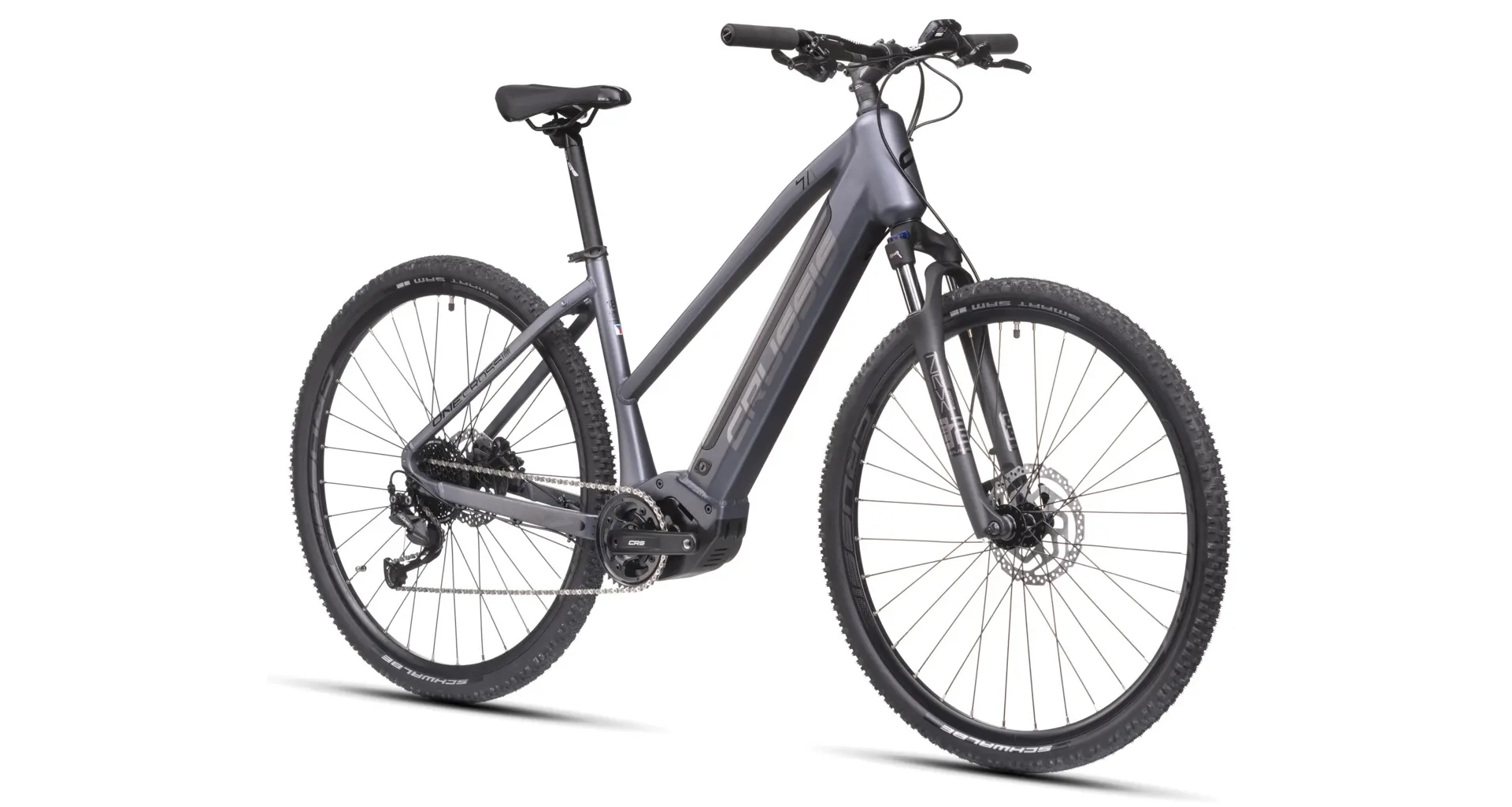 Model Crussis ONE-Cross low 7.10 patří mezi oblíbená treková (krosová) elektrokola. Vyniká integrovanou baterií přímo v rámu, takže není nijak narušený design kola a zajišťuje maximální komfort a ovladatelnost při jízdě jak v nízké, tak i vysoké rychlosti. Kapacita baterie se liší dle zvolené varianty – S (14,5 Ah) nebo M (20 Ah).