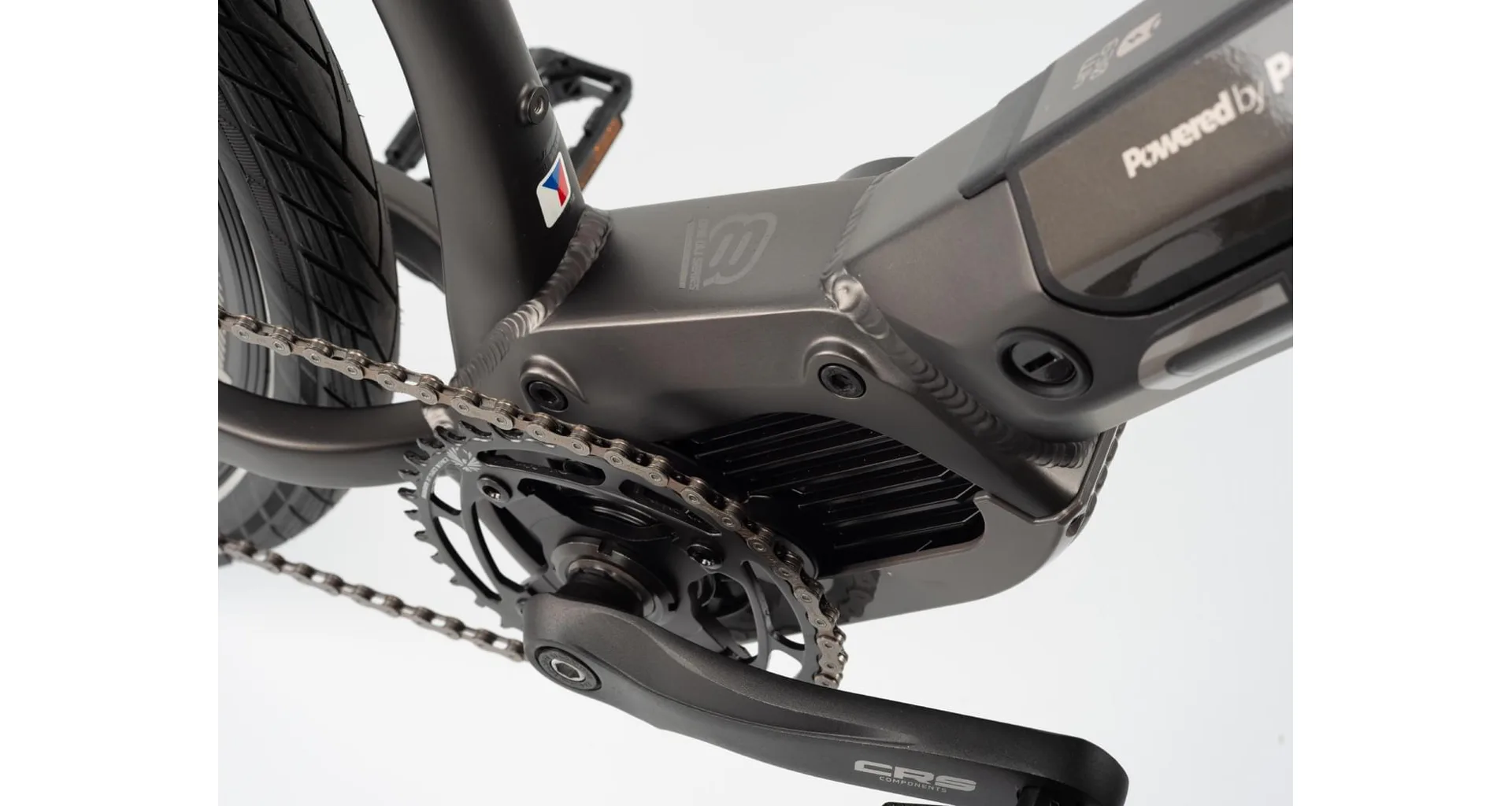 Motor je umístěn ve středové části rámu, díky tomu jsou zajištěny maximálně dobré manipulační schopnosti s kolem a komfortní jízda a sportovní vzhled.