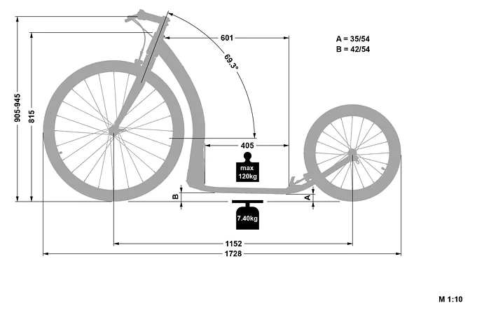 Koloběžka je vhodná pro jezdce od 145 - 190 cm vysoké.