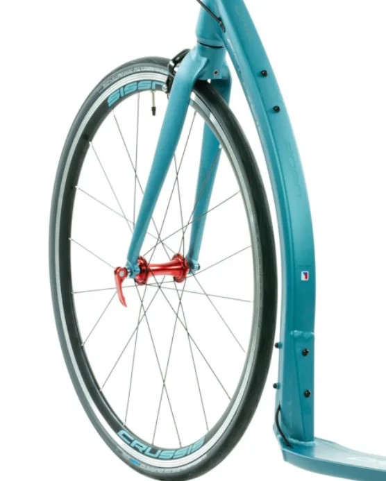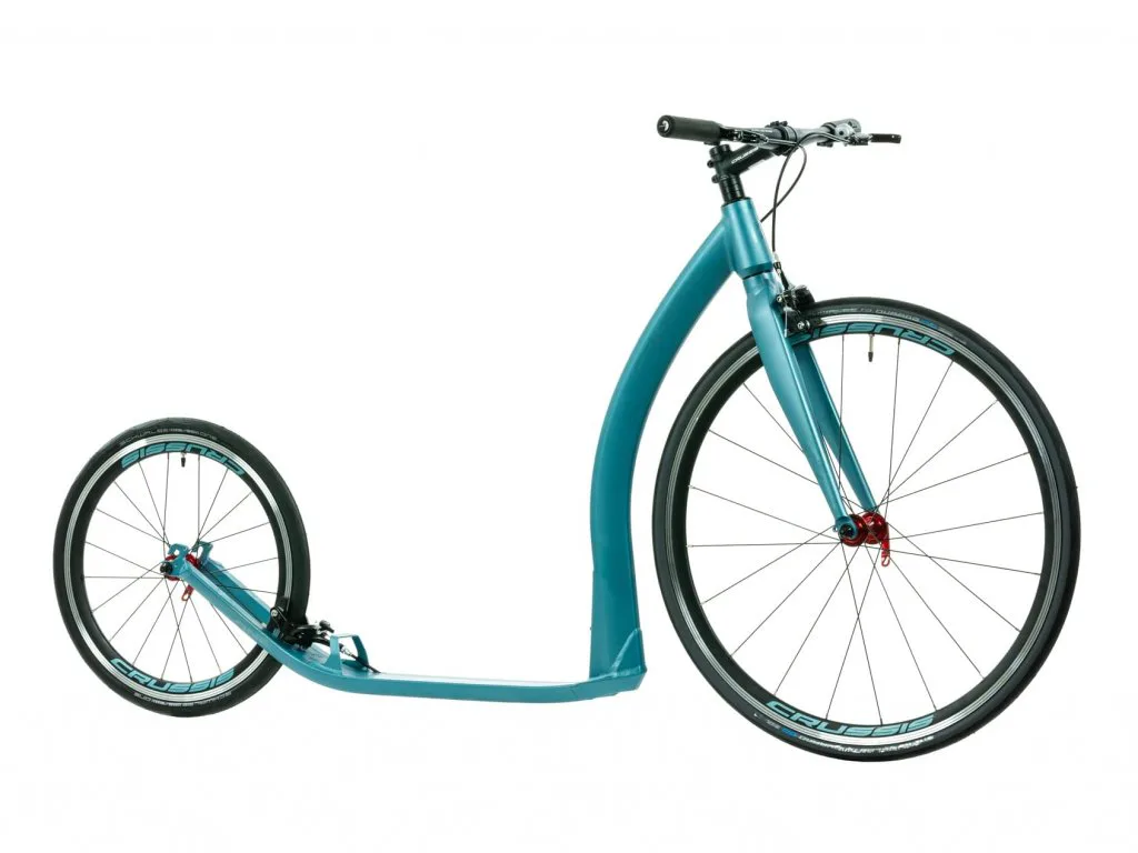 Unikátní hliníkový rám koloběžek Crussis Road byl vyvinut tak, aby se zadní vidlicí tvořil jeden celek. To eliminuje únavové lomy v místech, kde je vidlice ke stupátku obvykle přivařena. Díky vysoké tuhosti rámu a vhodné profilaci trubek neztrácíte energii při odrazu. Krátký rozvor kol spolu s vhodně zvoleným úhlem hlavové trubky zaručuje perfektní ovladatelnost koloběžky a zároveň stabilitu při vyšších rychlostech.