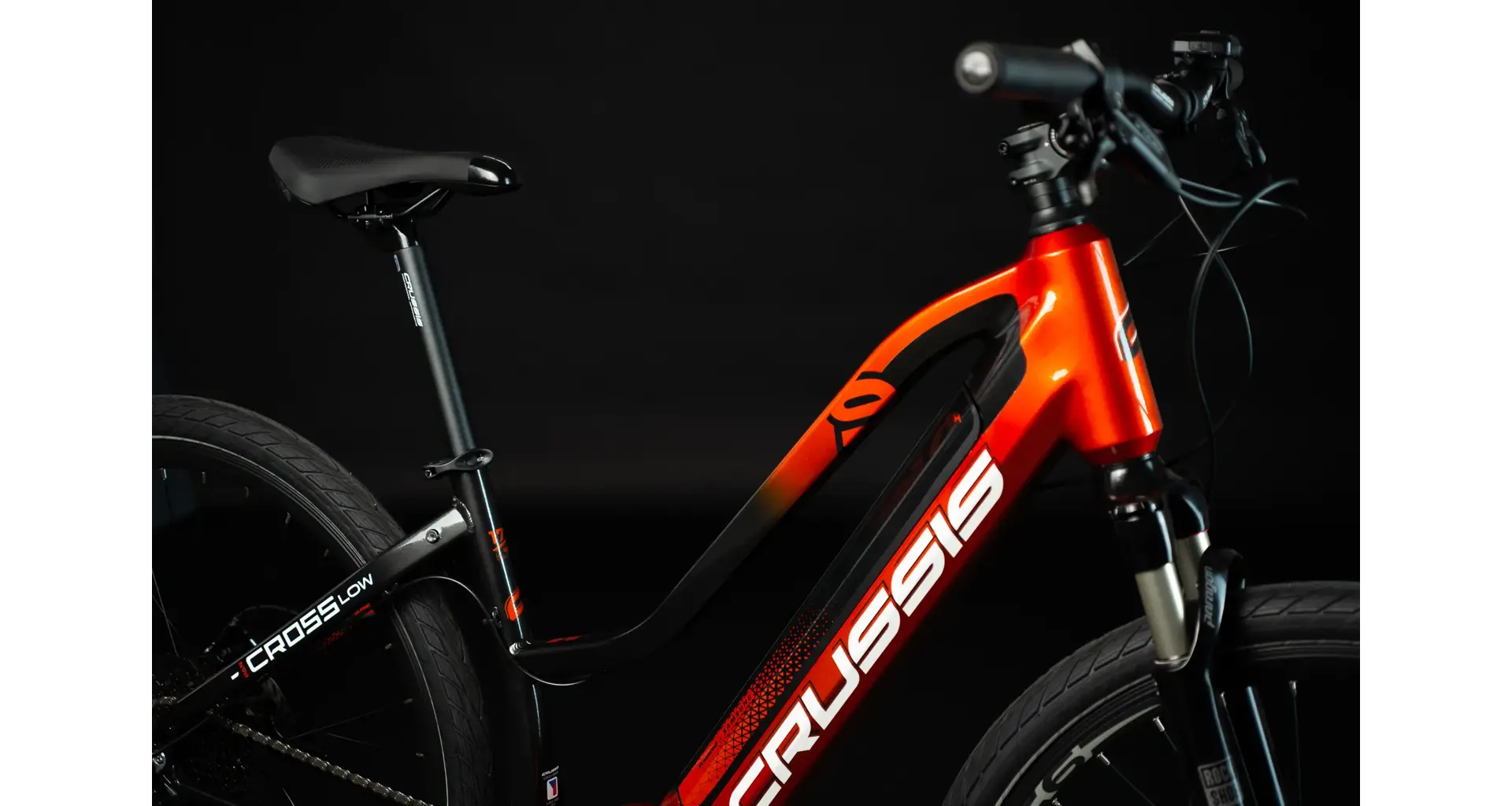 Crussis PAN-Cross Low 9.8 je vybaveno odpruženou vidlicí se vzduchovým tlumením ROCKSHOX FS Paragon Gold RL R Solo Air 700c se zdvihem 65 mm, která se skvěle přizpůsobí váze cyklisty. Jednoduchým systémem si změníte tlak vzduchu ve vidlici a e-bike plně přizpůsobíte vaší váze a stylu jízdy.