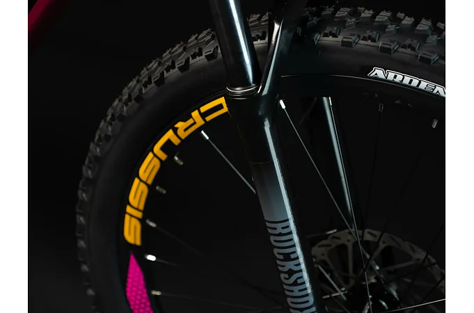 Crussis PAN-Guera 8.8 je vybaveno odpruženou vidlicí se vzduchovým tlumením ROCKSHOX FS Judy Silver TK Solo Air 27,5" se zdvihem 100 mm, která je skvěle přizpůsobivá váze cyklisty.