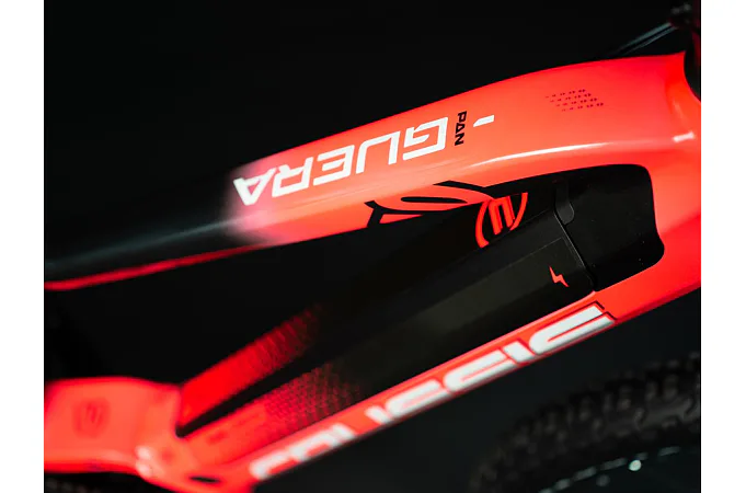 Baterie elektrokola PAN-Guera 9.8 SAMSUNG Li-Ion 36V / 720 Wh (20 Ah) je integrovaná v rámu. Tato pozice je ideální pro vyváženost hmotnosti baterie a se zárukou dobré manipulace s kolem.