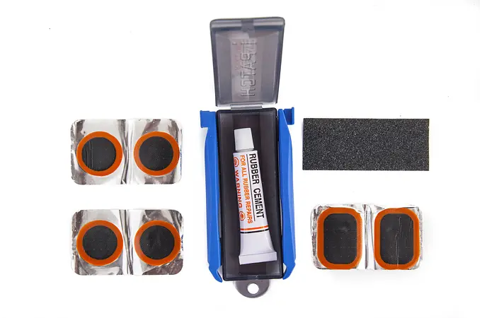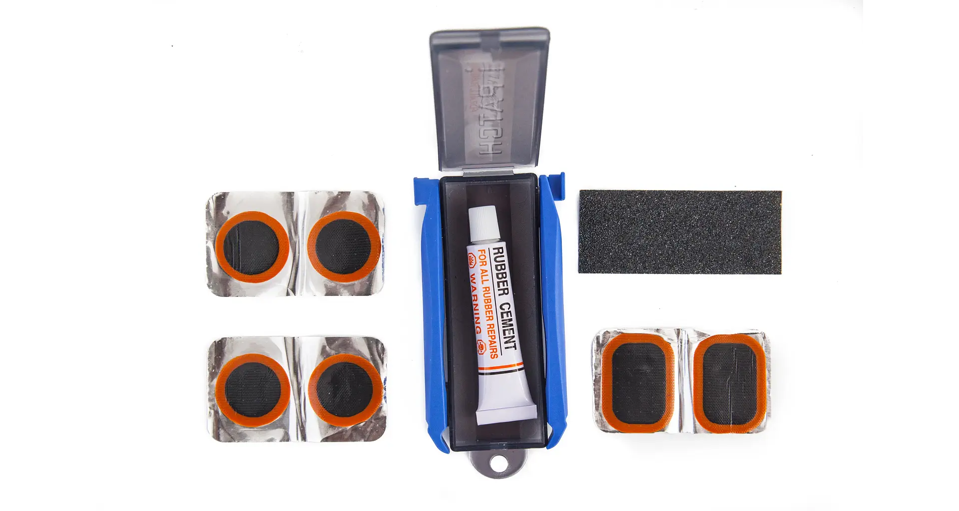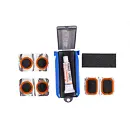 Sada na opravu duší koloběžek, elektrokol a jízdních kol. Sada obsahuje 4 malé kruhové záplaty (25 mm) a 2 velké oválné záplaty (25 x 35 mm), dvě montpáky, smirkový papír pro zdrsnění povrchu duše (pro lepší efektivitu lepidla) a tubu lepidla s obsahem 4 ml.