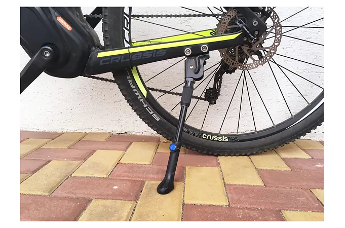 Stojánek vhodný pro elektrokola CRUSSIS s přípravou pro stojánek na zadní stavbě (řetězové vzpěře). Stojánek je vhodný pro kola s velikostí kol 24" - 29". Délka stojánku se velmi snadno nastavuje pomocí tlačítka a není k tomu potřeba žádného nářadí.