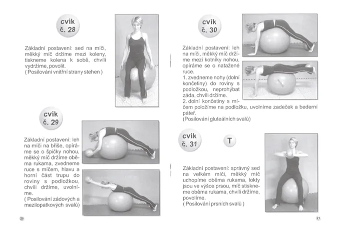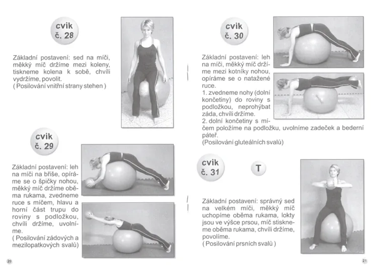 Cvičení pro zdraví je vynikající, přehledná a srozumitelná příručka pro všechny, co se chtějí hýbat a dělat tak něco prospěšného pro své zdraví. Příručka Cvičení pro zdraví Vám doporučí cviky vhodné k udržení fyzické kondice, zlepšení postavy a protáhnutí pohybového aparátu. Publikace osvětlí základní informace ohledně výběru vhodného velkého míče a správného posezu na něm. Následuje přehled cviků s podrobným popisem a několika obrázky ke každému z nich. Konkrétně se jedná o 26 cviků s velkým míčem (+ 5 v kombinaci s malým míčem, 8 s gumou a 6 s medicinballem) a 13 cviků pouze s malým míčem