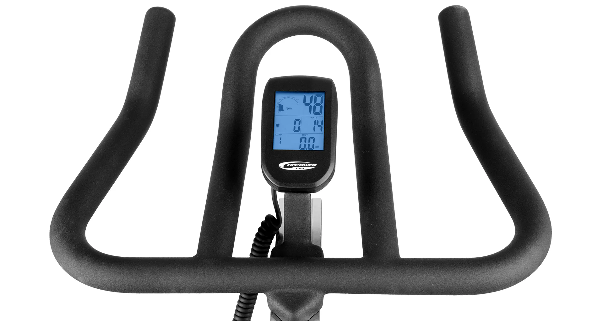 Součástí trenažéru BH Fitness Duke Magnetic je přehledný počítač, transportní kolečka, vyrovnávače nerovnosti a držák na lahev.