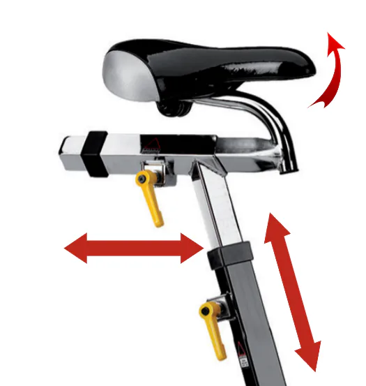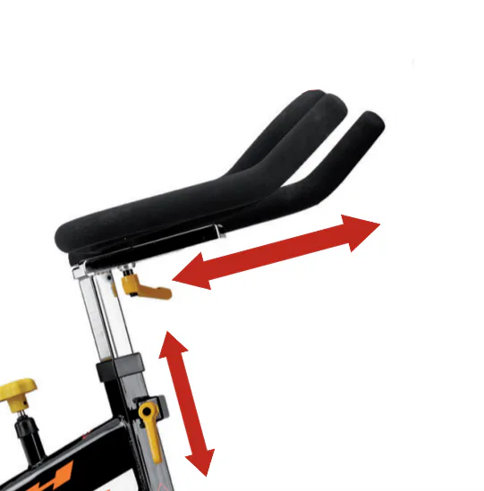 Kvalitní ergonomicky tvarované sedlo a triatlonová řídítka jsou nastavitelná v horizontálním i vertikálním směru + sklon sedla.