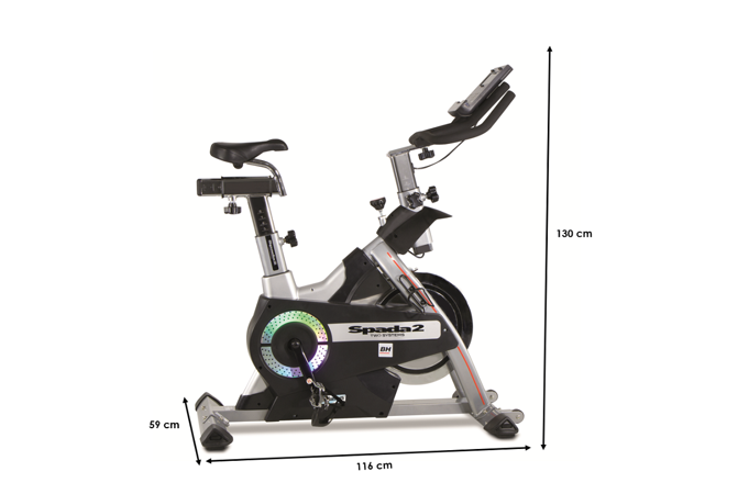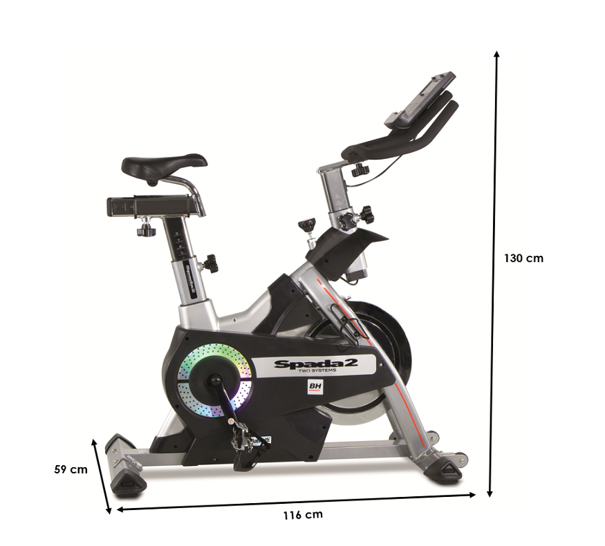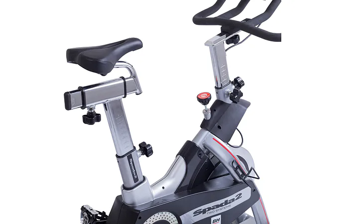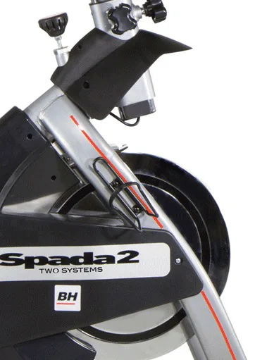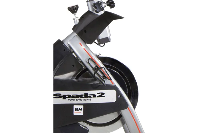 BH Fitness i.Spada 2 poskytuje výbornou ergonomii, kterou lze individuálně optimalizovat. Sedlo i řídítka lze nastavit ve vertikálním i horizontálním směru pro maximální komfort (sedlo má i možnost polohování sklonu). Šlapací střed je osazen průmyslovými ložisky a klikami na kónický čtyřhran. Na klikách jsou osazeny oboustranné pedály, na jedné straně s klipsnou, a na druhé straně s nášlapným systémem SPD Shimano.