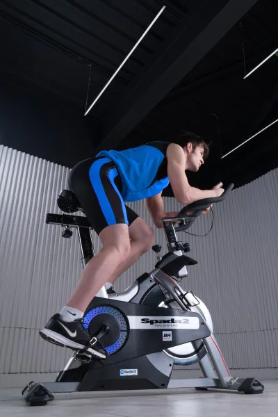 BH Fitness i.Spada 2 FTMS je cyklotrenažér určený pro intenzivní domácí trénink až 20 hodin týdně. Dokonale simuluje klasické silniční kolo s možností šlapání i "ve stoje".