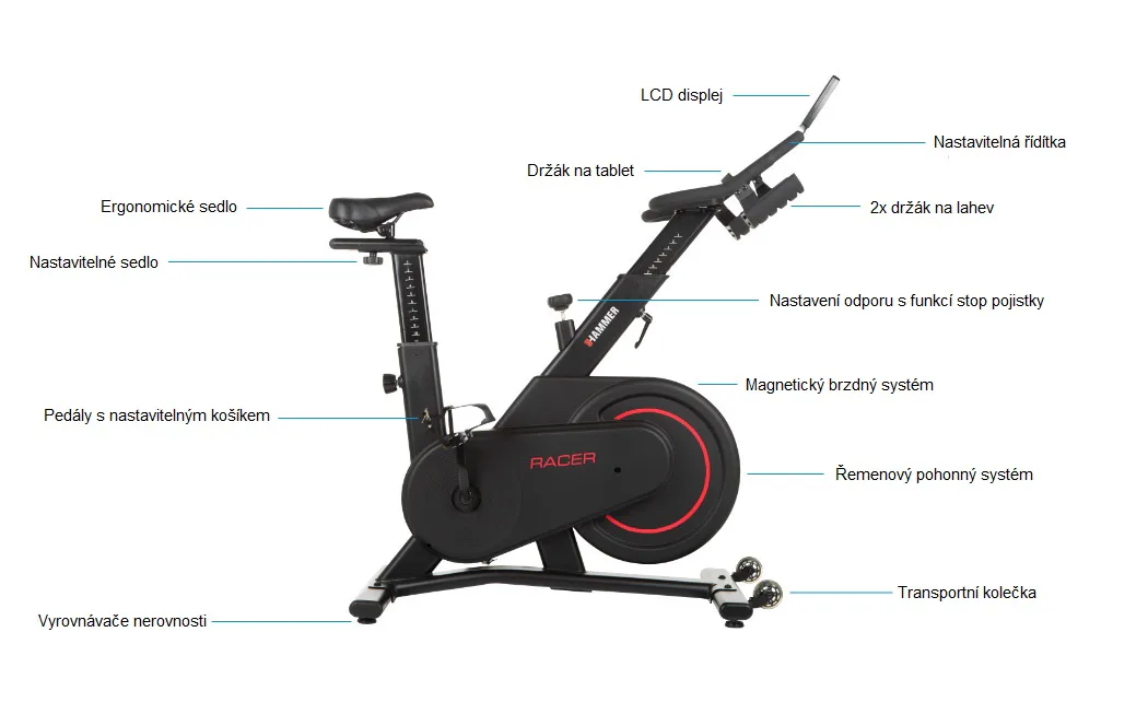 Cyklotrenažér Hammer Speed Racer je kondiční trenažér simulující závodní kolo, určený do domácího prostředí. Nadchne jak začátečníky, tak i pokročilé cyklisty.