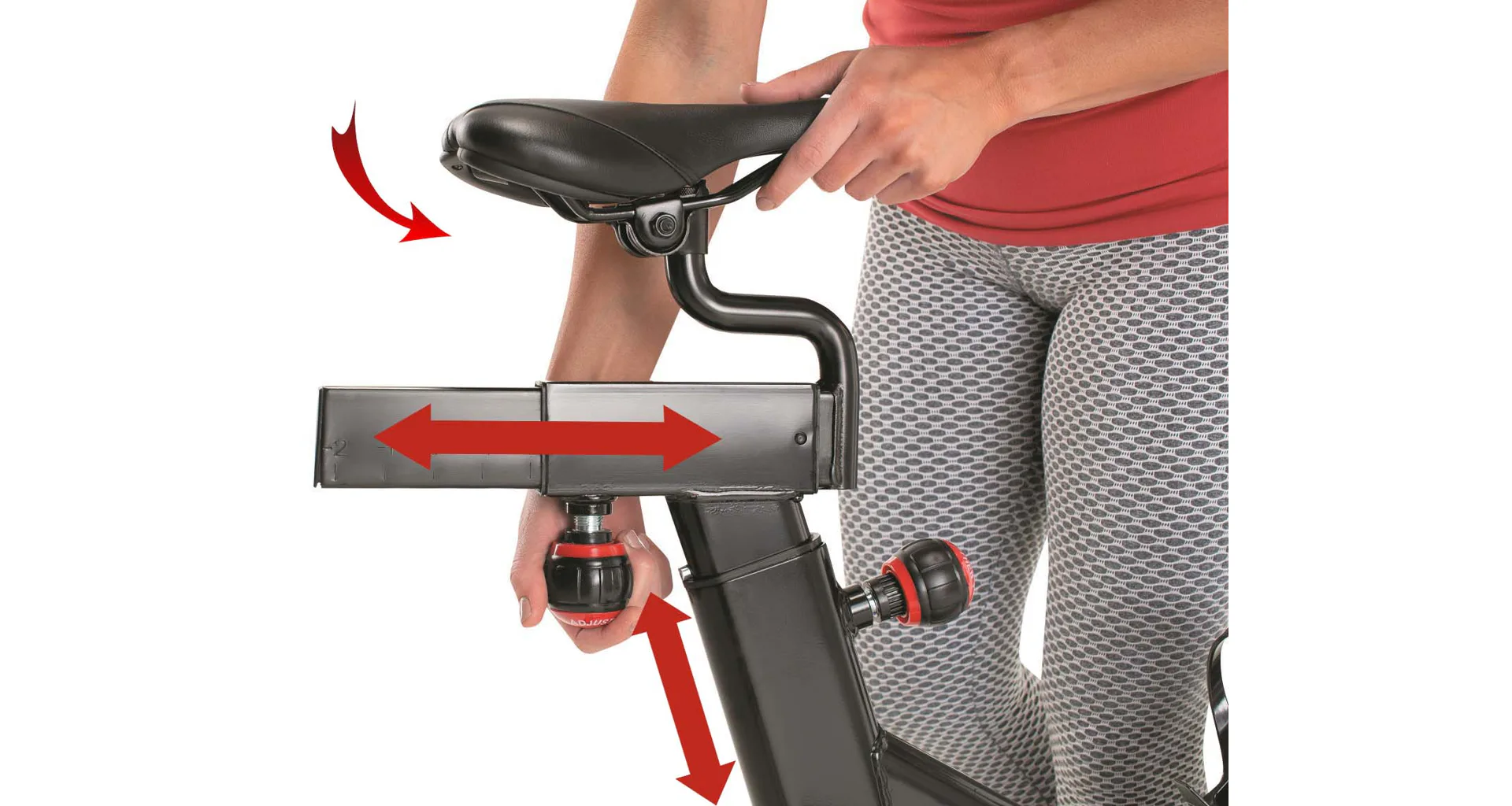 Kvalitní ergonomicky tvarované sedlo a triatlonová řídítka jsou nastavitelná v horizontálním i vertikálním směru + sklon sedla. Trenažér navíc disponuje standardním trnem na sedlo a závity pedálů umožňují jednoduchou výměnu za vlastní cyklistické pedály.