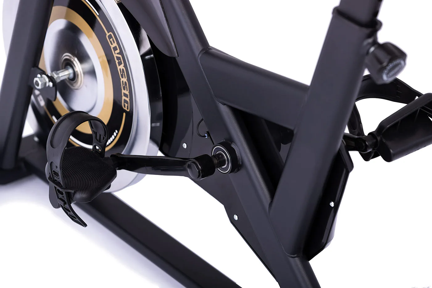 Díky pečlivě vyvinuté konstrukci s vysokou nosností, kvalitnímu zpracování a setrvačníkovému kolu s hmotností 8 kg zaručuje tichý a plynulý chod. Zátěž při šlapaní si snadno upravíte pomocí otočného regulátoru, který také slouží jako bezpečnostní pojistka.