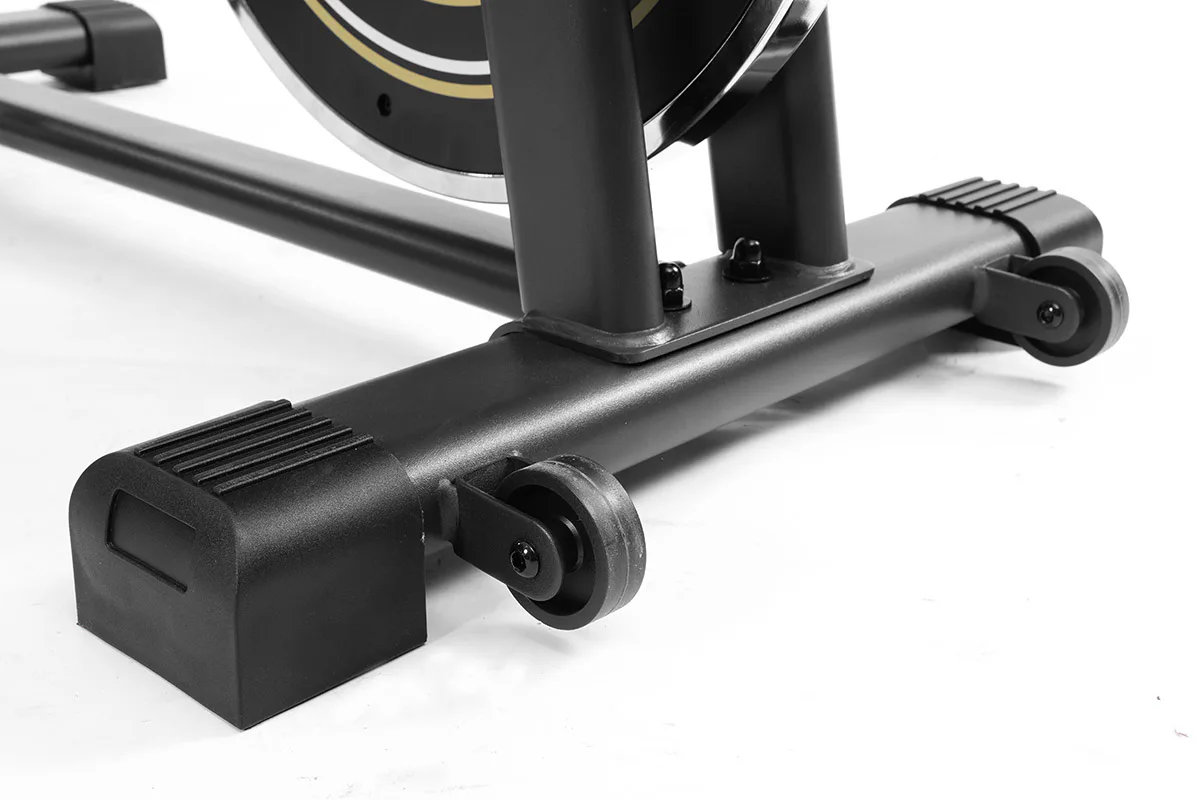 Díky pečlivě vyvinuté konstrukci s vysokou nosností, kvalitnímu zpracování a setrvačníkovému kolu s hmotností 12 kg zaručuje tichý a plynulý chod. Zátěž při šlapaní si snadno upravíte pomocí otočného regulátoru, který také slouží jako bezpečnostní pojistka.