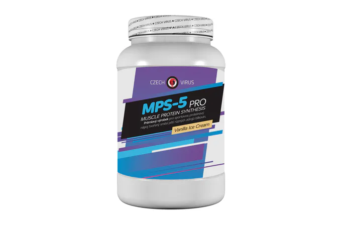 MPS-5 PRO je vysoce kvalitní protein složený z 5-ti různých zdrojů bílkovin. Největší část tvoří syrovátkový koncentrát zpracovaný metodou CFM (Cross-Flow Microfiltration) a nativního mléčného proteinu (zdroj micelárního kaseinu). Zbytek tvoří směs CFM syrovátkového izolátu, hydrolyzovaný (naštěpený) syrovátkový koncentrát a vaječný albumin. Složení reflektuje aktuální studie pro nejideálnější složení proteinu pro maximální anabolismus. To vše navíc doplňují enzymy Tolerase™ L, Papain a Bromelain pro maximální využití bílkoviny a štěpení laktózy.