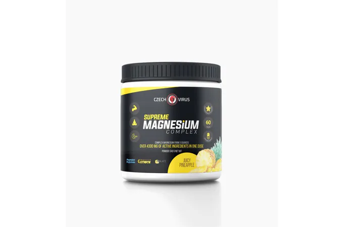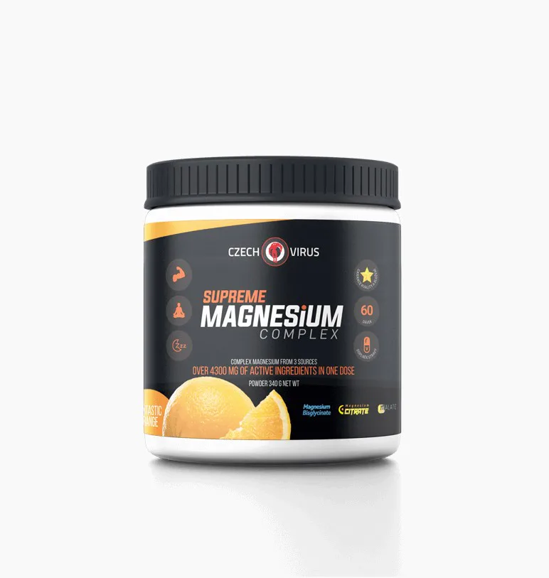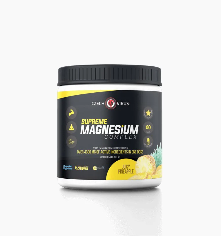 Supreme Magnesium Complex je komplexní směs hořčíku s obsahem tří různých forem - bisglycinátu, citrátu a malátu. Hořčík je jedním z nejdůležitějších a zároveň nejvíce deficitním minerálem v lidském těle. Kromě kostí se nachází skoro ve všech orgánech, které hořčík využívají pro své fungování a biologické procesy. Má vliv na více než 300 funkcí, nachází se zejména ve svalech, srdci a ledvinách. Pro atlety se jedná o naprostý základ v suplementaci. Supreme Magnesium Complex je dostupný ve dvou vynikajících příchutích - šťavnatý ananas nebo fantastický pomeranč.