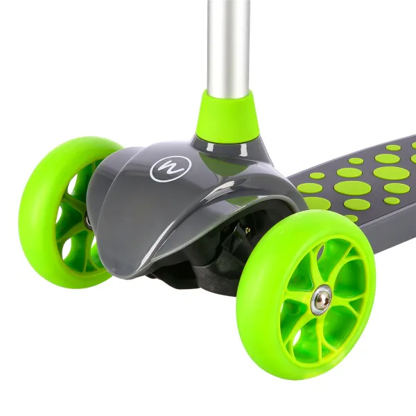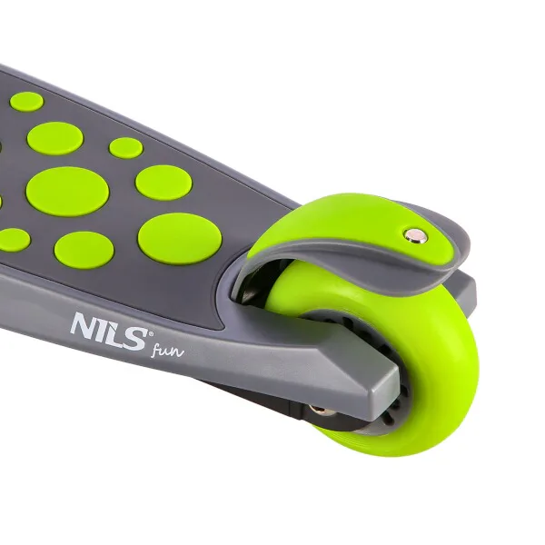 Koloběžka NILS Fun HLB02 má kolečka osazena svítícími LED diodami, které slouží jako zajímavý, vizuální prvek, zvyšují zájem dětí a v neposlední řadě zvyšují viditelnost koloběžky například za šera. Kolečka svítí automaticky během jejich otáčení.