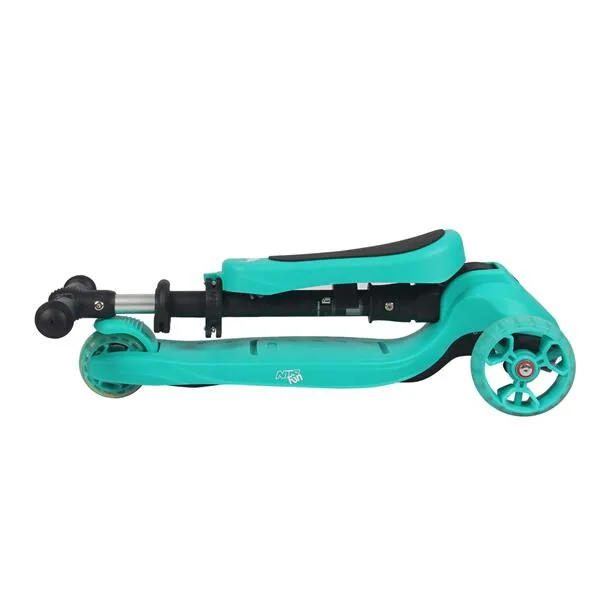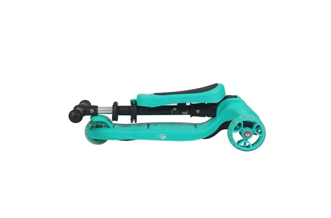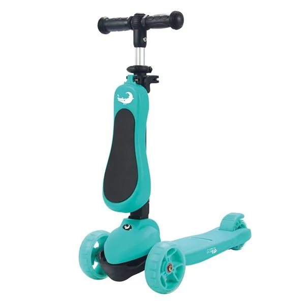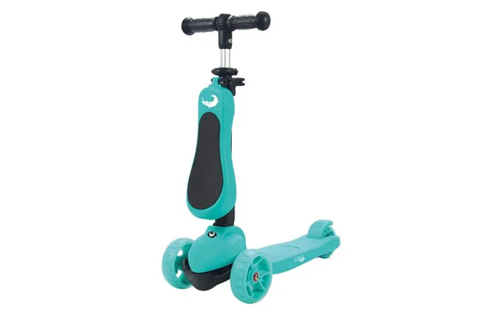 Dětská koloběžka NILS Fun HLB12 je určena pro nejmladší milovníky jízdy na třech kolech. Označení 2v1 informuje o tom, že model HLB12 je vybaven odnímatelným sedátkem a je tak použitelná jako odrážedlo, nebo koloběžka. Pohodlné a veliké sedátko zajišťuje plný komfort z jízdy a zároveň umožňuje pohodlné odrážení se od země. Řídítka modelu HLB12 slouží jako držadla. Zatáčení koloběžky se prování pomocí naklápění se vpravo, nebo vlevo. Při naklonění se systém zatáčení snaží vyrovnat koloběžku zpět do svislé polohy a tím vytočí přední kola do směru, kam je jezdec nakloněn. Tento systém zatáčení je zároveň maximálně bezpečný. Kola není možné přetočit a tak nehrozí sesmyknutí, nebo ostré zatočení koloběžky. Balanční systém řízení navíc rozvíjí rovnováhu a koordinaci dítěte. Všechny kolečka v sobě mají ukryty LED diody, které se při pohybu rozsvítí, široké zdaní kolečko zvyšuje stabilitu koloběžky. Řídítka je možné výškově nastavit v rozmezí 63 - 80 centimetrů.