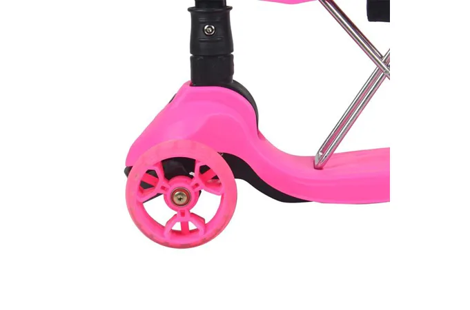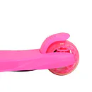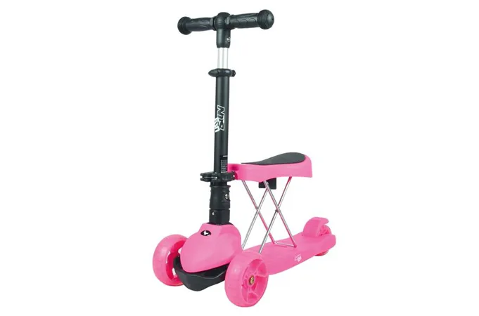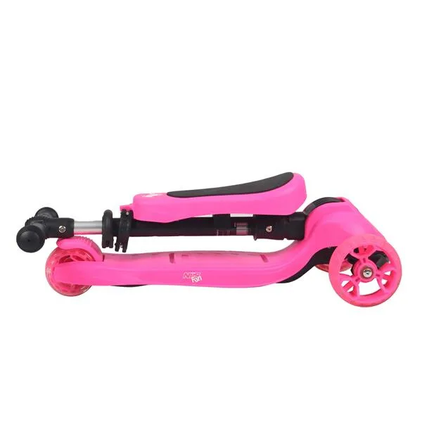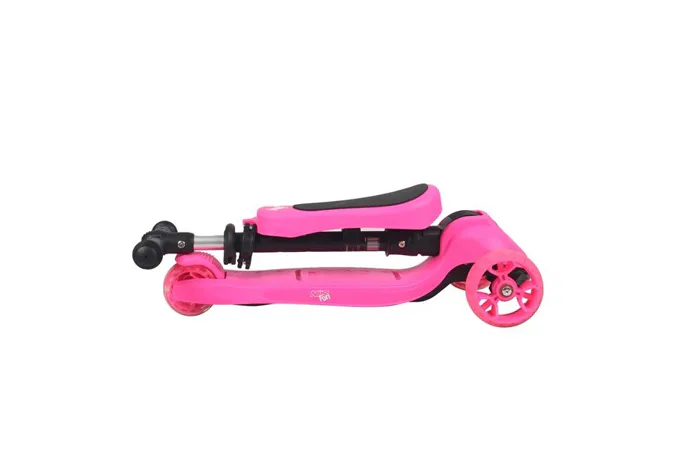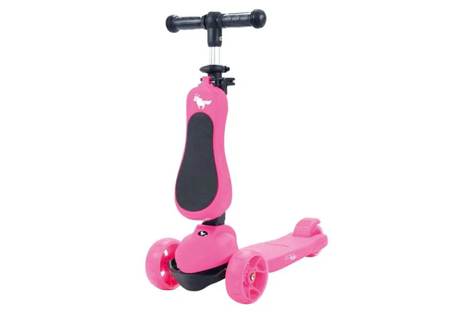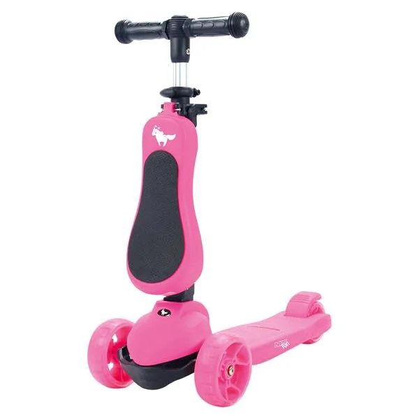 Dětská koloběžka NILS Fun HLB12 je určena pro nejmladší milovníky jízdy na třech kolech. Označení 2v1 informuje o tom, že model HLB12 je vybaven odnímatelným sedátkem a je tak použitelná jako odrážedlo, nebo koloběžka. Pohodlné a veliké sedátko zajišťuje plný komfort z jízdy a zároveň umožňuje pohodlné odrážení se od země. Řídítka modelu HLB12 slouží jako držadla. Zatáčení koloběžky se prování pomocí naklápění se vpravo, nebo vlevo. Při naklonění se systém zatáčení snaží vyrovnat koloběžku zpět do svislé polohy a tím vytočí přední kola do směru, kam je jezdec nakloněn. Tento systém zatáčení je zároveň maximálně bezpečný. Kola není možné přetočit a tak nehrozí sesmyknutí, nebo ostré zatočení koloběžky. Balanční systém řízení navíc rozvíjí rovnováhu a koordinaci dítěte. Všechny kolečka v sobě mají ukryty LED diody, které se při pohybu rozsvítí, široké zdaní kolečko zvyšuje stabilitu koloběžky. Řídítka je možné výškově nastavit v rozmezí 63 - 80 centimetrů.