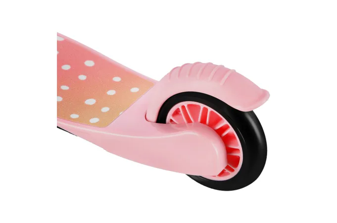 Vzdálenost mezi předními kolečky je 25 centimetrů, to je garancí vysoké stability, která se hodí na začátku každého koloběžkového dobrodružství. Tři kolečka jsou ideální pro první seznámení se s koloběžkou, s tím jak funguje a pro osvojení správné techniky pro jízdu na koloběžce.