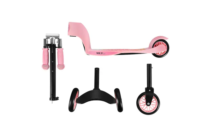 Koloběžka NILS Fun HLB202 2v1 byla navržena s ohledem na nejmladší uživatele a její atraktivní design jistě upoutá pozornost. To, co model HLB202 odlišuje, je možnost upravit tříkolovou koloběžku za klasickou se dvěma koly!