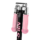 Gripy na řídítkách jsou vyrobeny z gumy pro jistý úchop. Konce gripů jsou opatřeny "bambulí", která zamezuje sesmyknutí dlaně z gripu a zároveň dlaň chrání, když dítě například zavadí řídítkem o překážku - například o fasádu domu. Kolečka jsou osazeny ložisky ABEC 5 pro pohodovou jízdu. Zadní blatník slouží jako nášlapná brzda pro bezpečné zastavení koloběžky.
