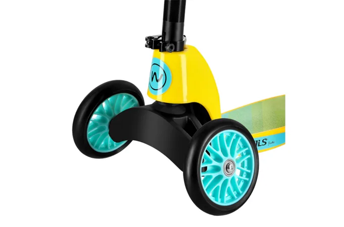 Vzdálenost mezi předními kolečky je 25 centimetrů, to je garancí vysoké stability, která se hodí na začátku každého koloběžkového dobrodružství. Tři kolečka jsou ideální pro první seznámení se s koloběžkou, s tím jak funguje a pro osvojení správné techniky pro jízdu na koloběžce.
