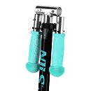 Gripy na řídítkách jsou vyrobeny z gumy pro jistý úchop. Konce gripů jsou opatřeny "bambulí", která zamezuje sesmyknutí dlaně z gripu a zároveň dlaň chrání, když dítě například zavadí řídítkem o překážku - například o fasádu domu. Kolečka jsou osazeny ložisky ABEC 5 pro pohodovou jízdu. Zadní blatník slouží jako nášlapná brzda pro bezpečné zastavení koloběžky.