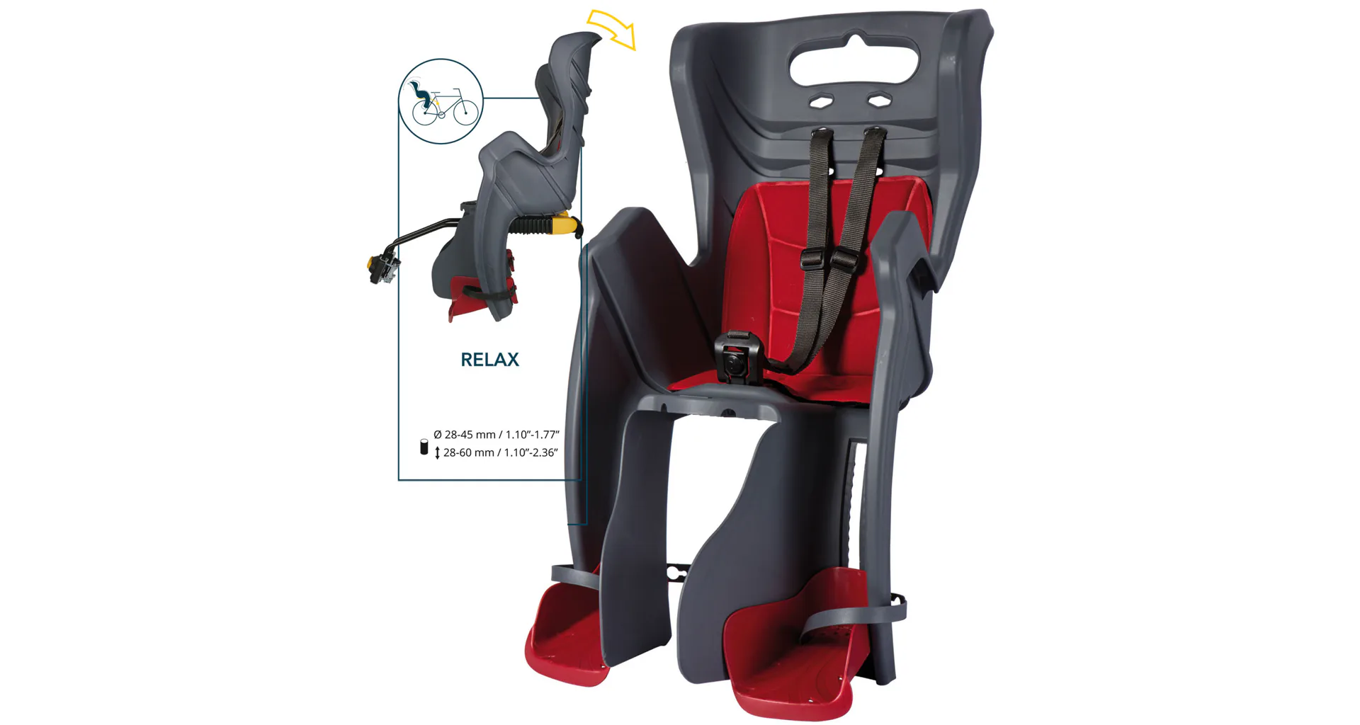 Sedačka je vhodná na kola s rámem o průměru 28 - 45 mm.