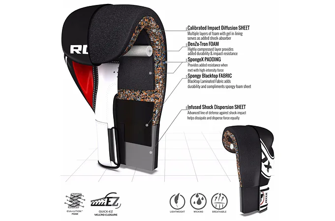 Špičkové dětské boxerské rukavice RDX white/black vyrobené z nejtvrdší kůže s vysokou odolností proti nárazům, aby byly malé ručičky v bezpečí. Naprosto nezničitelné a pohodlné zároveň. Obsahuje gelové a pěnové vycpávky, které chrání ruce a zápěstí před tvrdými nárazy, high-tech podšívku, která odpuzuje vlhkost a snadno použitelný pásek na suchý zip, který je nastavitelný tak, aby perfektně seděl i na malé ruce.